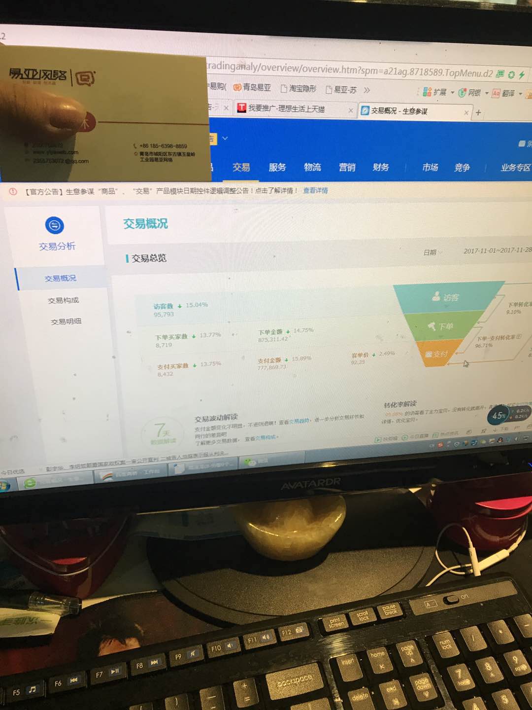 淘宝代运营青岛易亚网络店铺实时数据展示