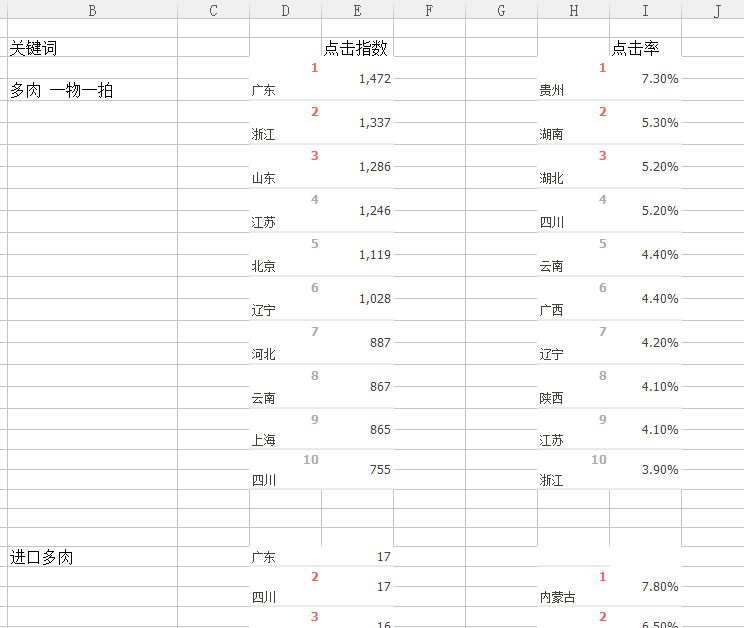 5. 地域筛选出优质关键词的共同高点击指数和高点击率的共同地域5—10个。